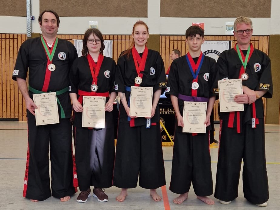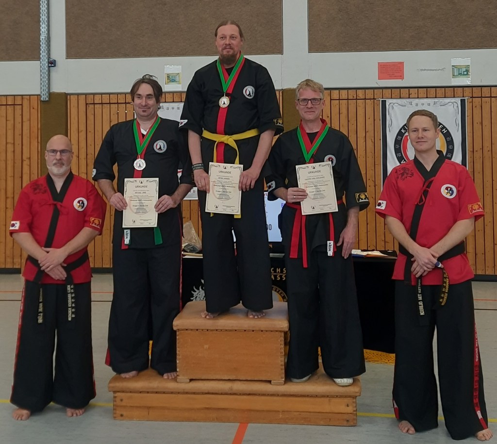 Am Samstag den 2. März machten sich 10 Kummooyeh-In des VfR Simmern auf den Weg nach Wolfenbüttel in Niedersachsen, um am Sonntag an einem Wettkampf-Seminar und Freundschaftstournier der Niedersächsischen Kummooyeh-Association teilzunehmen. Letzteres sehr erfolgreich, denn fünf der acht am Wettkampf teilnehmenden Sportler*innen standen am Ende auf den Treppchen: In der Kategorie der Frauen gingen gleich der erste und er zweite Platz an Sportlerinnen des VfR. Im Finale besiegte Maxime Sophie Sonnet knapp ihre Vereinskollegin Cora Lou Fontana. Bei den Männern unter Vierzig belegt Constantin Nevzgladov den zweiten Platz, bei den Männern über vierzig ging der zweite Platz and Michael Jörg und der dritte an Karsten Steil-Schlösser.