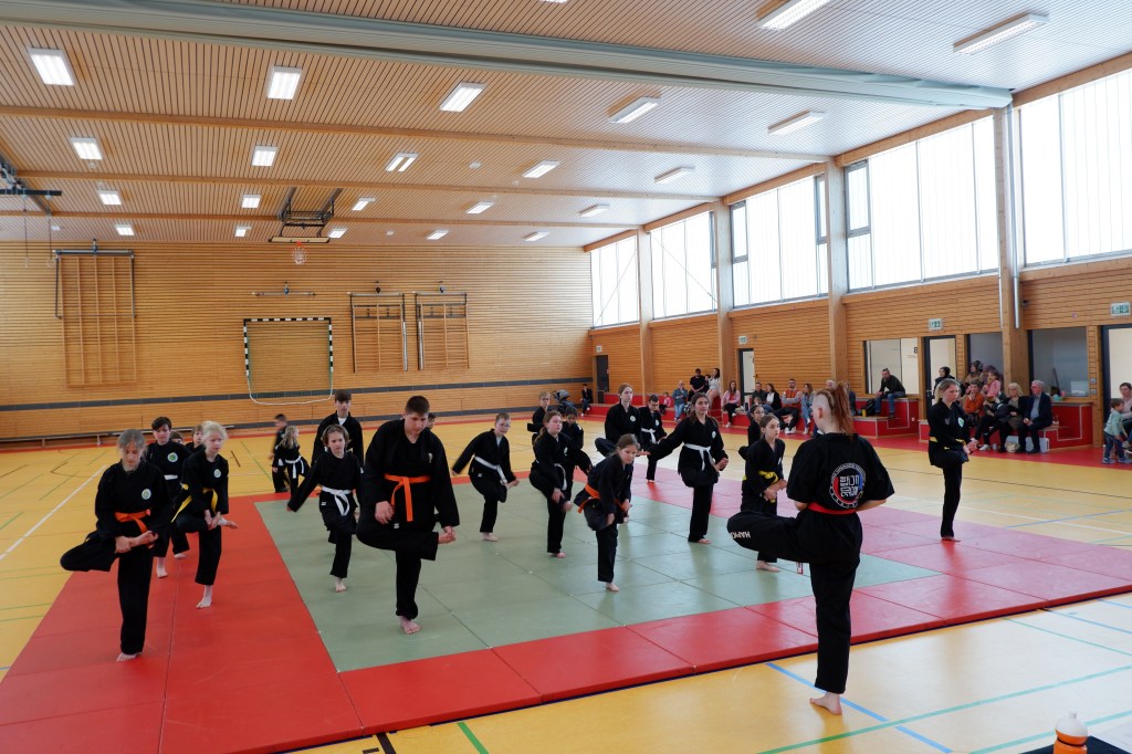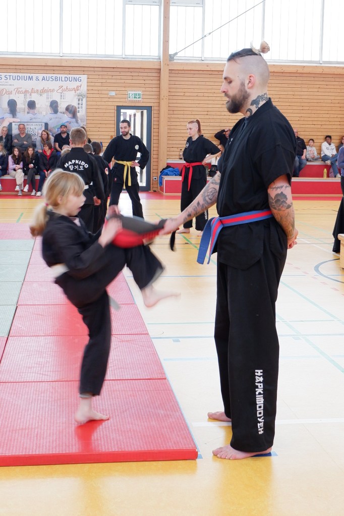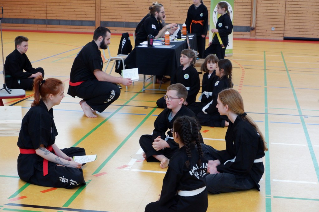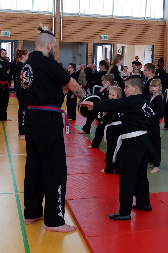 Die erste Gürtelprüfung, die Janis Michel als neuer Dan-Träger (Schwarzgurt) abnahm, war ein voller Erfolg. So durften sich insgesamt 33 HapKiDo-In über eine bestandene Prüfung und ihre neuen Gürtel freuen. Erstmalig wurde nach dem neuen Graduierungssystem auch die Zwischenstufe zwischen dem weißen und dem gelben Gurt geprüft.