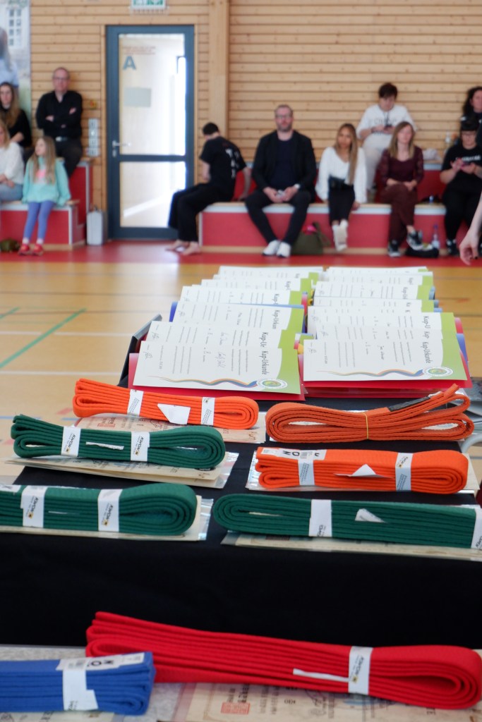 Vormittags wurden die Fortgeschrittenen geprüft, nachmittags die niedrigen Gürtelstufen. Die jüngste Teilnehmerin war 7 Jahre alt, der älteste Teilnehmer 58.